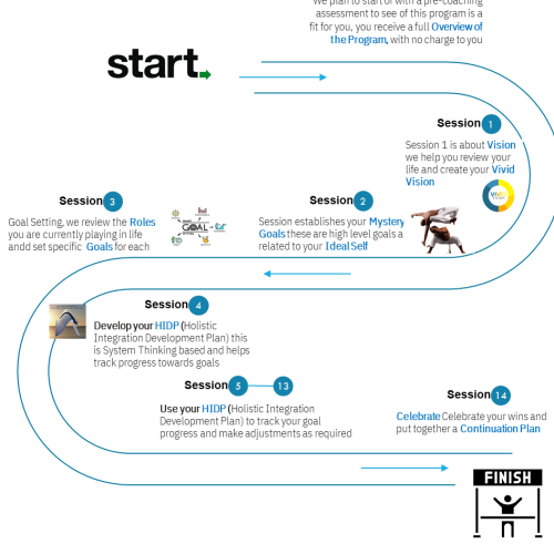 • Sessions 5 to 13 - Use your HIDP (Holistic Integration Development Plan) to track your goal progress and make adjustments as required